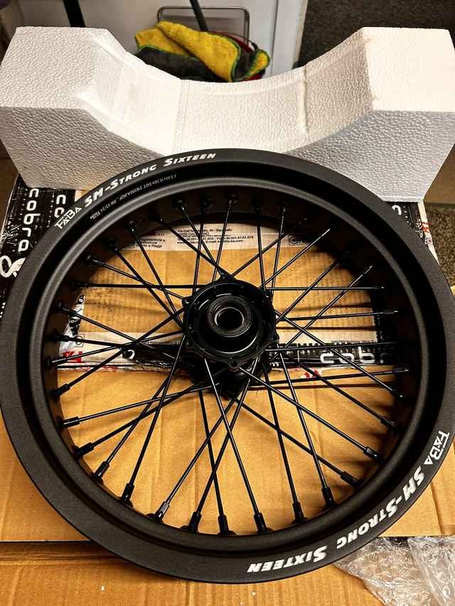 - Front Excel 16.5" (16" wet) rim with Biting hub
